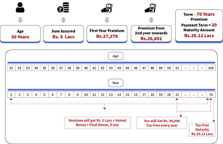 • The customer gets the tax-free maturity under this plan which includes the bonus also along with Sum Assured